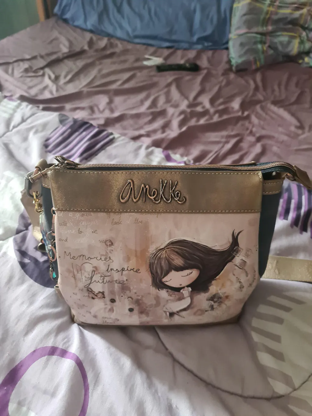 Anekke Memories is a collection built around Anekke’s memories. It’s a journey through some of the brand’s most iconic collections, represented in the print on the front with nods to their characteristic elements. A lighthouse from Mediterranean, the sun and stars from Universe, the suitcase from Travel, or the books from Jane will take you on a journey through Anekke’s memories. Are you ready to start this journey into Anekke’s past? The more you look at the print, the more collections you’ll discover. Start your journey into Anekke’s past here! This crossbody bag with zip closure has 3 separate compartments inside, is medium-large in size and has a back pocket. The handle is a shoulder strap adjustable to different lengths, perfect for adapting it to your preferred height. The interior is lined and has pockets. Because memories inspire the future, get ready to enjoy them with Anekke!